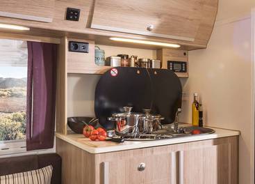 - 2-lågigt gasolkök med elektrisk tändning, diskho och glasluckor